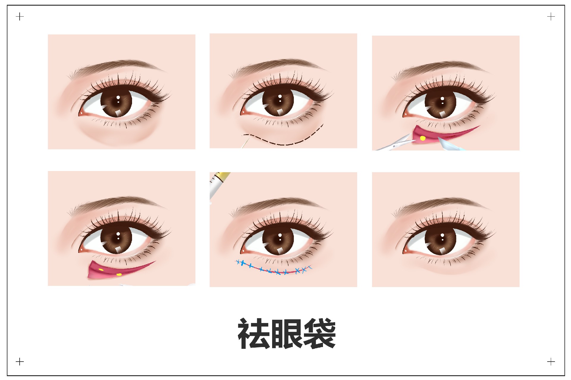 通過手術(shù)將眼部膨隆脫出的脂肪去除、肥厚下垂的眼輪匝肌修薄懸吊、松弛的皮膚切除,使面部年輕化。